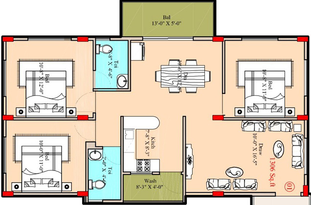 Paints: Interior Walls painted with plastic emulsion from Asian Paints or equivalent with Putty finish and exterior walls with Apex(Asian Paints ) or equivalent weather proof Exterior Emulsion.