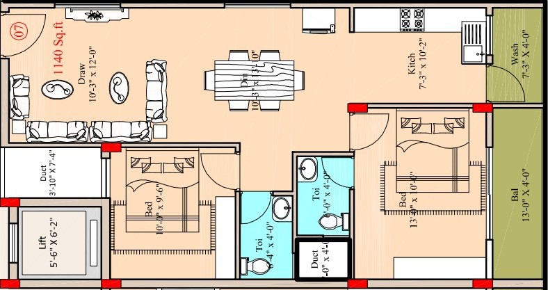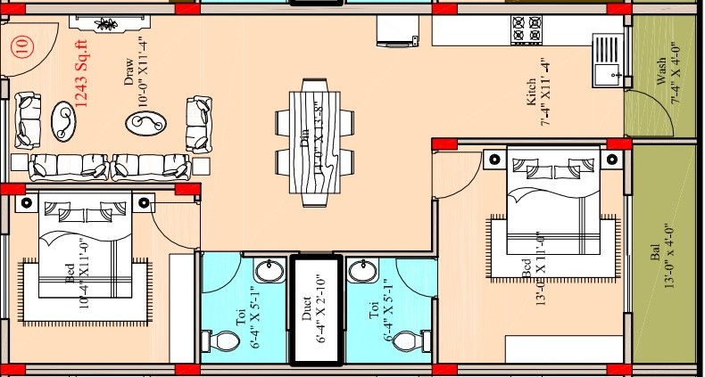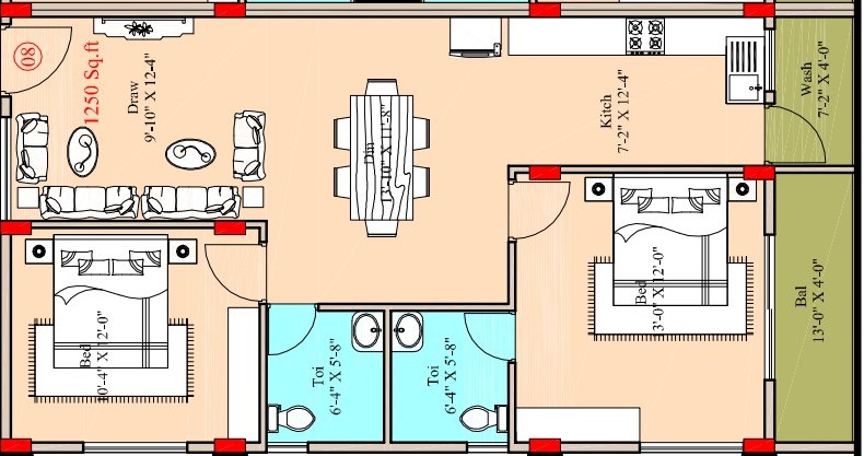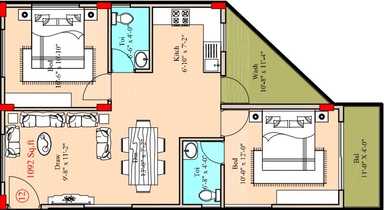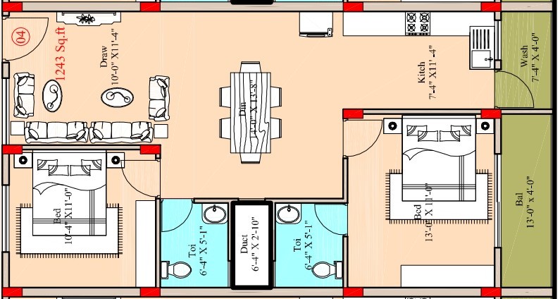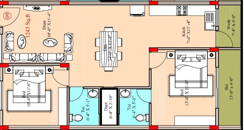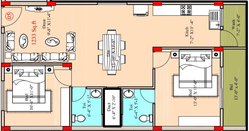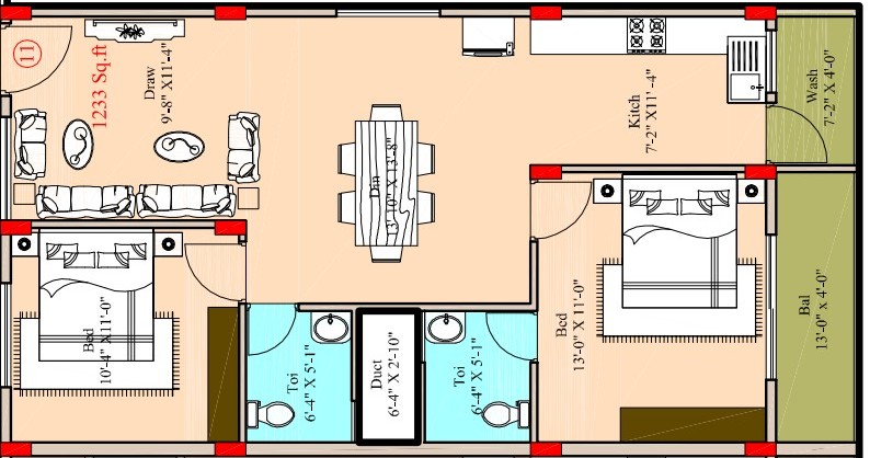 Structure: RCC Frame Structure with Solid Concrete block walls