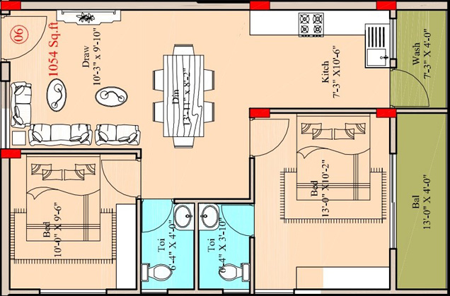 Doors and Windows: Main Door of Teak wood frame with skin paneled shutters, All other Doors of Sal wood frame with termite resistant Shutters.